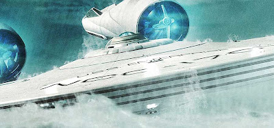 Follow. When the film begins and we’re on some planet or other, the USS Enterprise has been hiding under the ocean. You know in your heart that this doesn’t make sense somehow but it’s still very exciting as the ship rises up from the sea and flies off across the sky before heading out into space. It’s very well done, it looks real, you could clap.